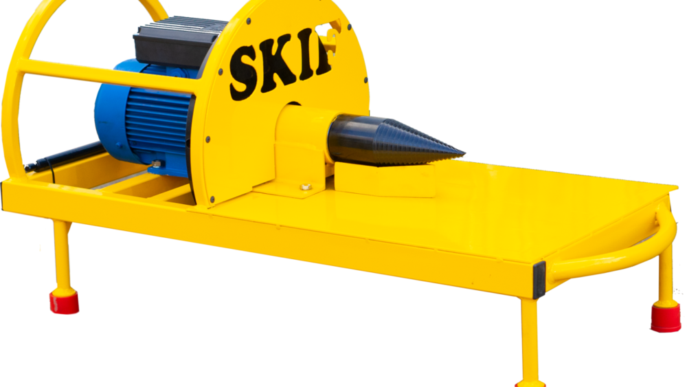 Подача поленьев происходит очень просто. Для этого достаточно положить их на небольшую станину. После того как чурбан подводится к конусу, все происходит автоматически. На него нанесена структура, которая способствует проникновению модуля внутрь дерева, чем происходит расслоение на части. Никаких разлетающихся щепок или слетающих топорищ. Все безопасно и с задачей сможет справиться даже ребенок. Максимальное значение развиваемых оборотов — 3000 в минуту.