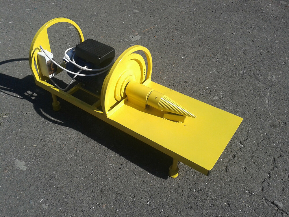 Простой в эксплуатации: вам достаточно подставить бревно под вращающийся шуруп, после чего колун вкручивается в полено и разрывает его на части.
