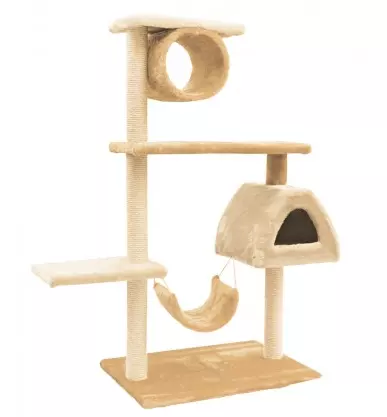 Перший ярус - затишний будиночок з одного боку і майданчик для ігор і відпочинку з іншого, між якими на міцних шнурах підвішений зручний гамачок зі штучного хутра.