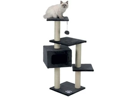 Виріб складається з міцних і якісних матерій. Одним з таких матеріалів є сизаль - природна нитка з відмінними характеристиками довговічності та міцності. З подібним ігровим комплексом тварина ніколи не занудьгує. Вона зможе грати з помпоном, прикріпленим до стійки за допомогою мотузки або перестрибувати з однієї платформи на іншу.