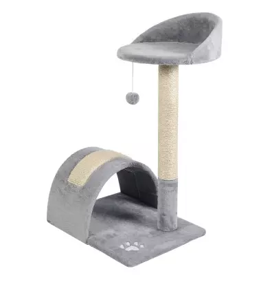 Дряпки з укриттям-аркою, стовпчиком-дряпалкою і майданчиком для відпочинку - це справжнє ігрове містечко для вашого котика. В укритті улюбленець зможе відпочити, а на верхній частині арки є вставка з сизалю, на якій зручно точити кігтики. Майданчик для відпочинку з невисоким бортиком та іграшкою-помпоном, розміщеному на стовпчику-дряпці, буде улюбленим місцем відпочинку тварин. Оббивка дряпки - штучне хутро, яке добре чиститься і не сиплеться. Господарі відзначають, що дряпки з аркою компактна, не займає багато місця і має чудовий вигляд в інтер'єрі