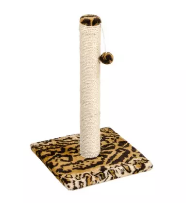 Проста стійка дряпка може стояти в будь-якому приміщенні, вона дуже компактна і чудово вписується в інтер'єр. Стовпчик, обгорнутий джгутом - натуральним рослинним волокном - дозволить уберегти інші предмети в будинку від гострих кігтиків, а помпон на шнурку стане улюбленою іграшкою улюбленця.