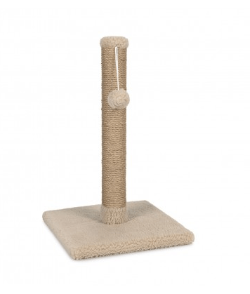 Проста стійка дряпка може стояти в будь-якому приміщенні, вона дуже компактна і чудово вписується в інтер'єр. Стовпчик, обгорнутий джгутом - натуральним рослинним волокном - дозволить уберегти інші предмети в будинку від гострих кігтиків, а помпон на шнурку стане улюбленою іграшкою улюбленця.