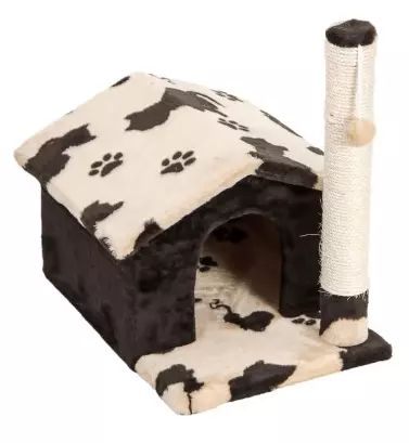 Ця модель ідеально підходить улюбленців різного віку. Дорослі тварини зможуть комфортно відпочити в просторому будинку і поточити кігті, а малюки із задоволенням будуть стрибати на дах будиночка і грати з помпоном, прикріпленим до стовпчика-дряпки.