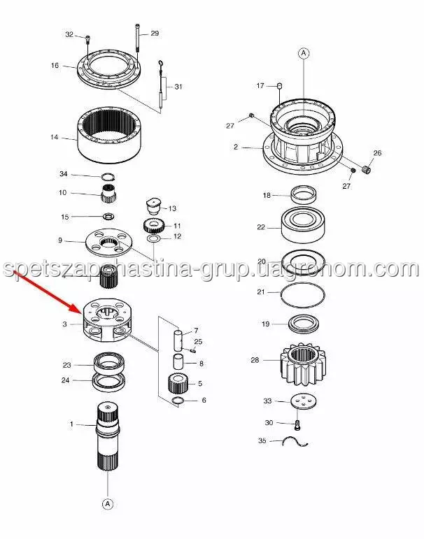 DS-32-03 Водило Doosan, Дусан. Купити запчастини для спецтехніки можна у Києві безпосередньо з нашого складу. Всі запчастини в мости та КПП ми поставляємо безпосередньо від виробника. Ремонт мостів та трансмісії проводить наш сервісний центр з ремонту спецтехніки та двигунів (Київ, Україна).