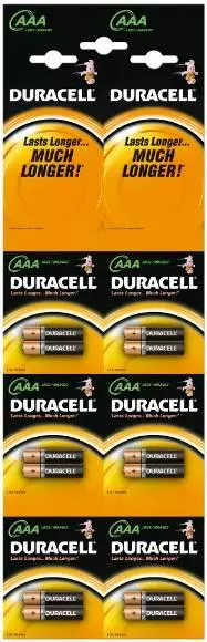 Duracell LR03 MN2400 1х2 шт (отрывные 2х6) Батарейки Производитель Duracell Тип Батарейки Типоразмер AAA Химический состав Щелочные Количесвто в упаковке 12 Напряжение 1.5V Упаковка Блистер Штрих код:2000963810249
