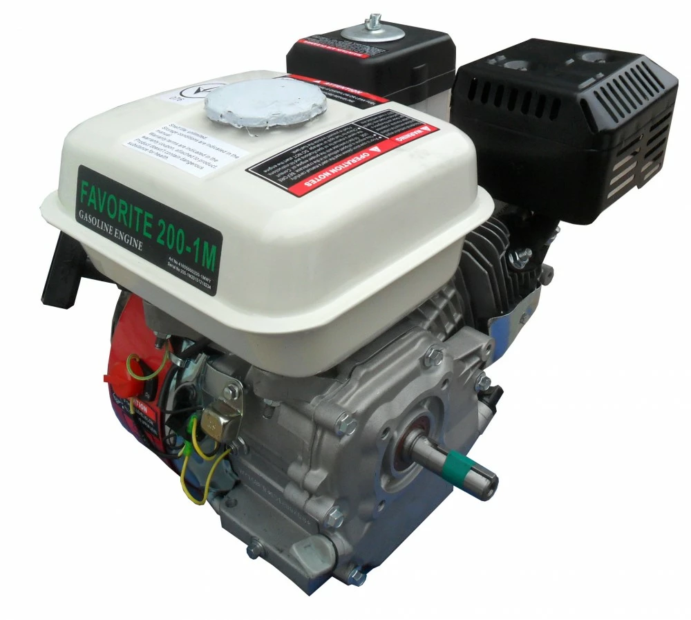 Модель двигателя: E200 Вид двигателя: бензиновый Тип двигателя: 4-тактный, OHV Рабочий объём двигателя (см3): 196 Мощность двигателя (л.с.): 6,5 Крутящий момент (Н.м.): 11 Система зажигания: электронная Тип охлаждения: Воздушное Воздушный фильтр: маслянная ванна Объем топливного бака (л): 3,6 Рекомендуемое топливо: АИ95 Объём масла в картере (л): 0,6 Тип масла в картере: SAE 10W3 Тип вала: соединение под шпонку Диаметр вала: 19 мм Вес: брутто 17кг / нетто 16кг