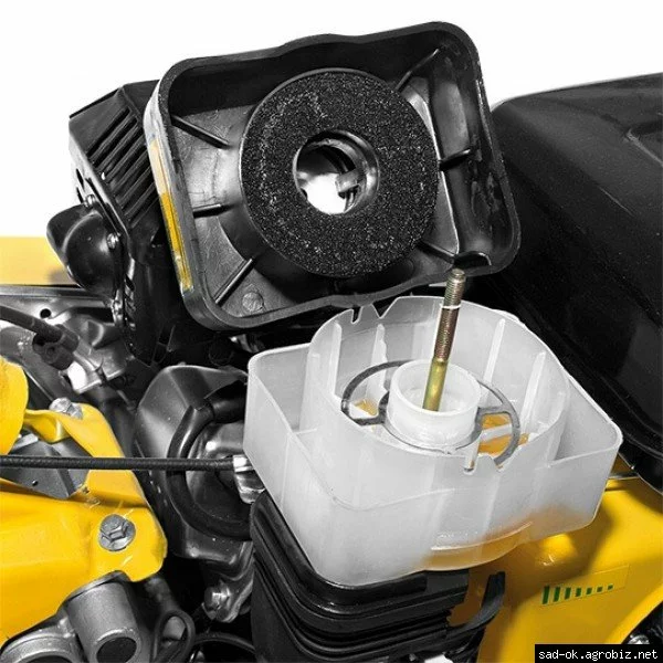 двигатель четырёхтактный, не нуждается в смешивании топлива с маслом, а также работает дольше. Свечи зажигания не засоряются, не покрываются нагаром.