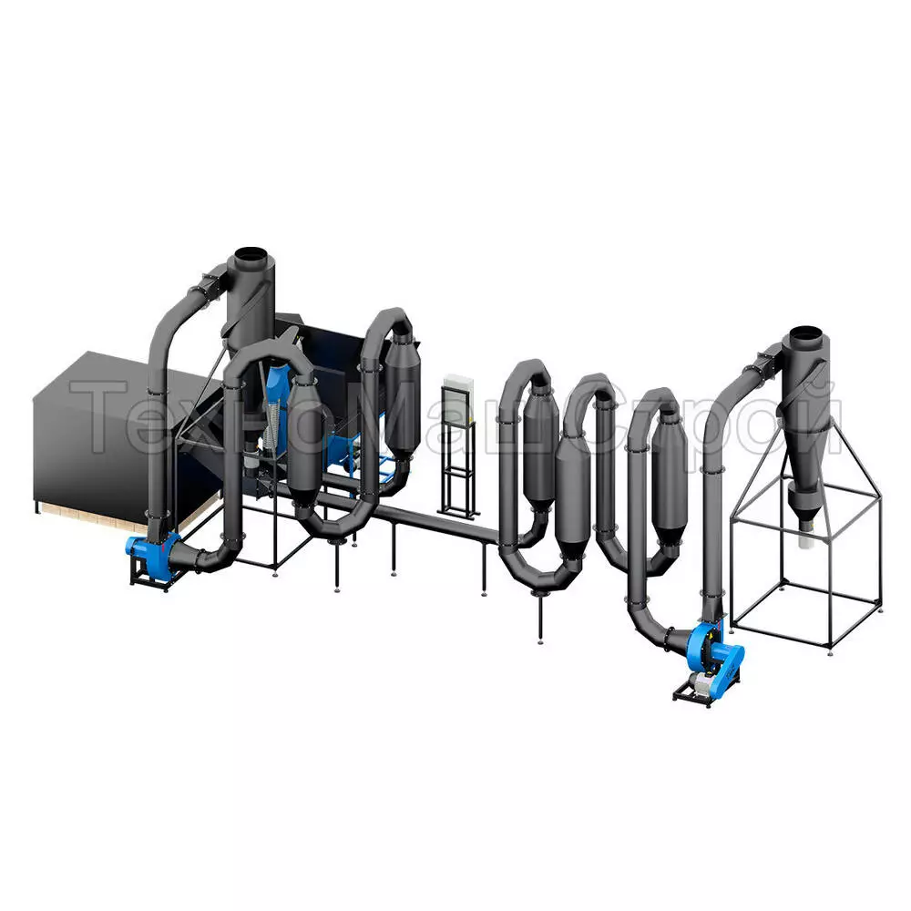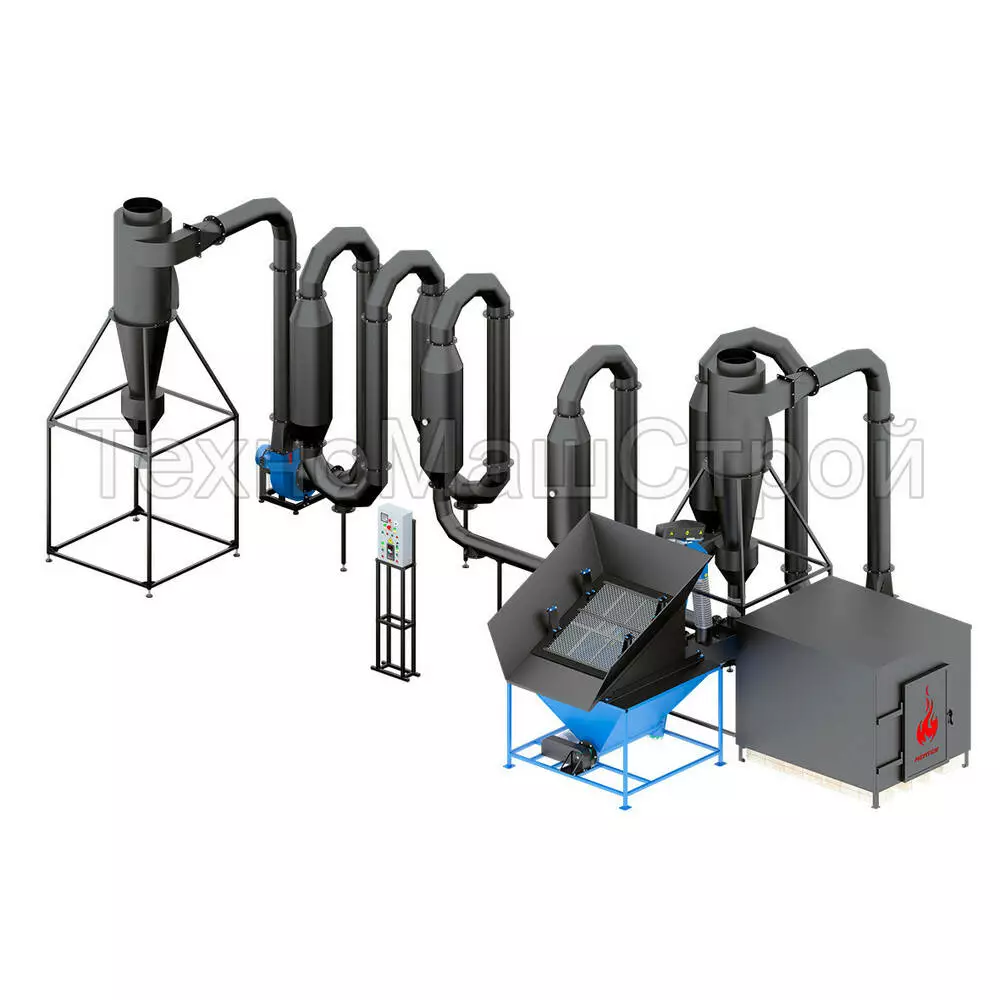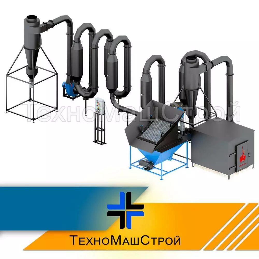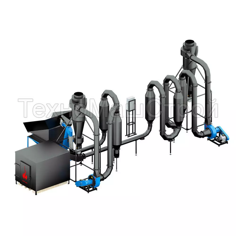 Сушильний комплекс СА-800 від компанії "ТехноМашСтрой" продуктивністю до 800 кг\годину призначений для висушування дрібної фракції відходів деревини (тирса, мікрощепи, відходів виробництва оциліндровки деревини, тирси) в гарячому повітряному потоці. СА-800 виготовлена ​​з якісної сталі, що дозволяє працювати на цій сушарці довгі роки не боячись прогоряння стінок повітряних каналів. Конструктивно сушарка виготовлена ​​окремими вузлами та частинами, що зручно при монтажі та транспортуванні. Джерело нагрівання повітря з сушарці є твердопаливна піч в комплекті до якої йде шамотна (вогнетрівка) цегла, якою при монтажі необхідно обкласти внутрішній бік печі. Цей сушильний узел може успішно працювати в комплексі з обладнанням для виробництва пелет COMBI-1000 DUO.