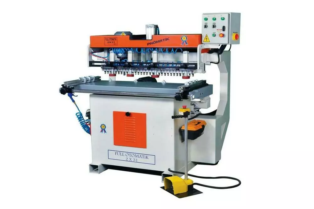 Двухголовый сверлильный станок Nevunsal 2x31 оснащен 62 шпинделями, что позволяет сверлить 62 отверстия одновременно. Каждый шпиндель может развить скорость до 3000 об / мин.