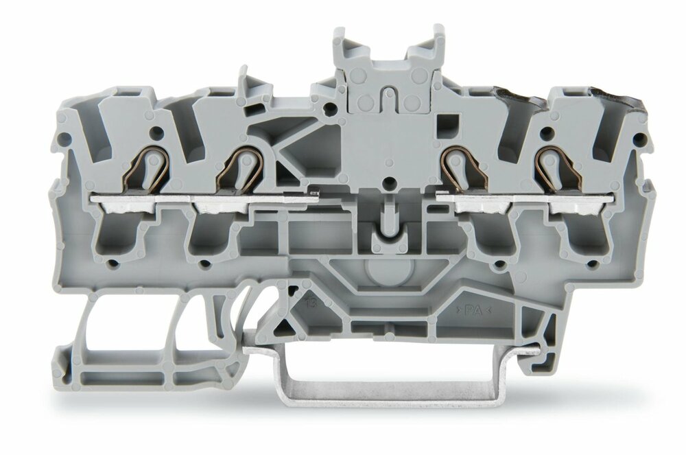 Двохпотенційні клеми 2,5 мм² Wago 2002-1441, з подвійним центральним маркувальним роз'ємом; для DIN- рейки 35 x 15 і 35 x 7,5; Push - in CAGE CLAMP®; 2,50 mm²; сірі.
