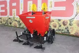 Двухрядная навесная сажалка для картофеля присоединяется к трактору при помощи заднего навесного устройства. Она выполняет все операции в одном рабочем цикле, связанным с высаживанием картофеля, т.е. вспахивает борозды, автоматически высаживает картофель и окучивает землю, формируя гряды.