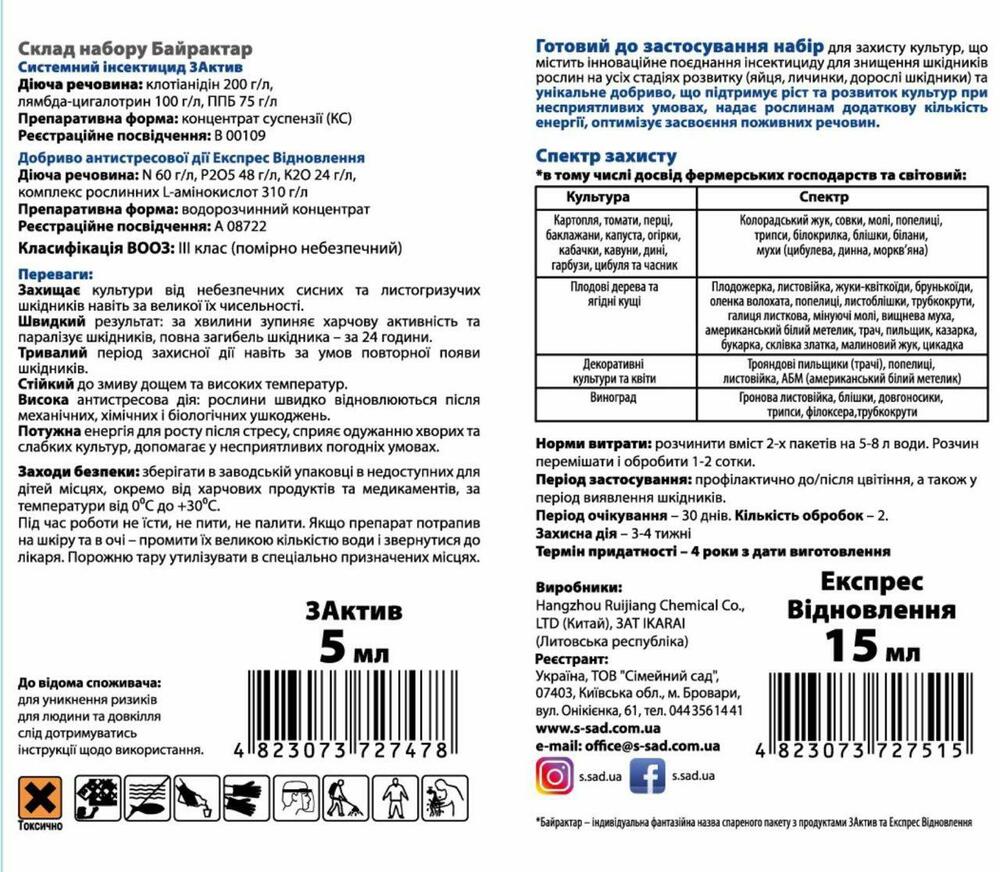 Набір Байрактар (Bayraktar) - готовий до застосування інсекто-фунгіцид для обробки овочевих, садово-ягідних та декоративних культур.