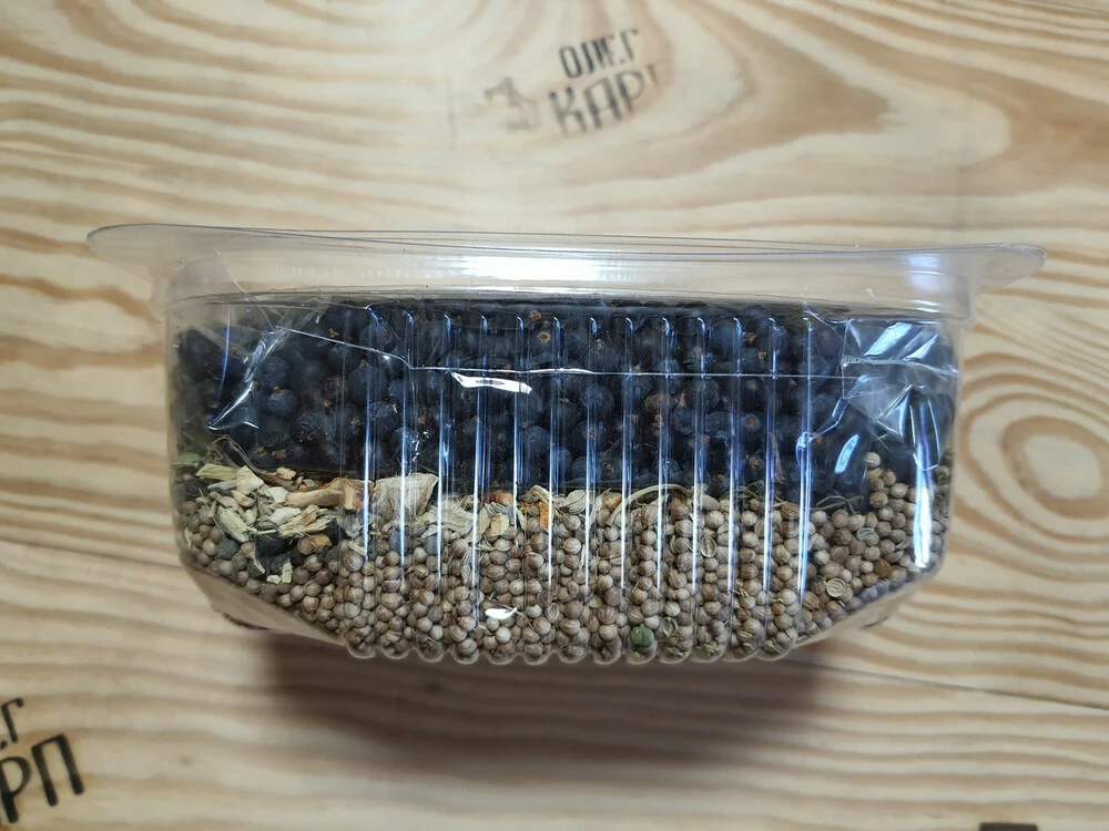 1. В 3 л ємність додати ягоди ялівцю і залити до повного спиртом 96 градусів.