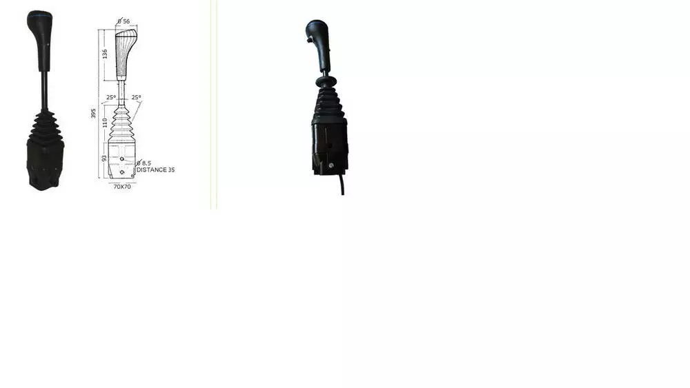 Джойстик тросовий із 3 кнопками на ручці, може встановлюватися в кабіні або будь-яких інших місцях техніки, під'єднується тросами до гідророзподільника або на гідрокеруванні. Підходить для всіх типів гідророзподільників.