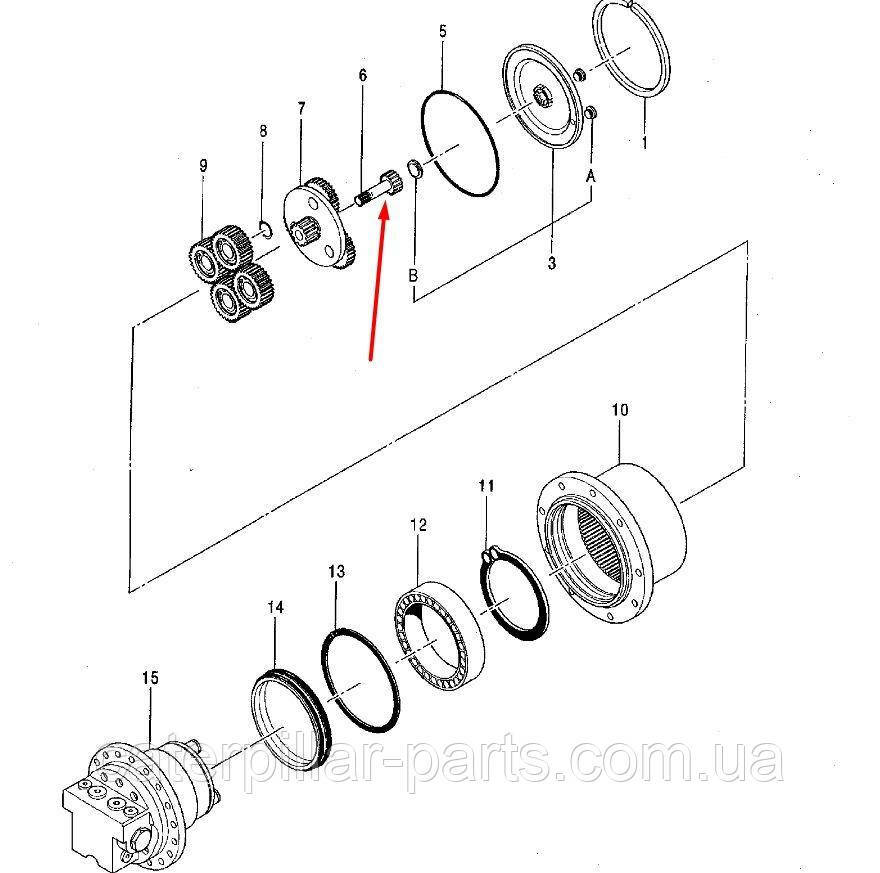 E0888404 Вал головної передачі HITACHI ZX25. Ремонт спецтехніки