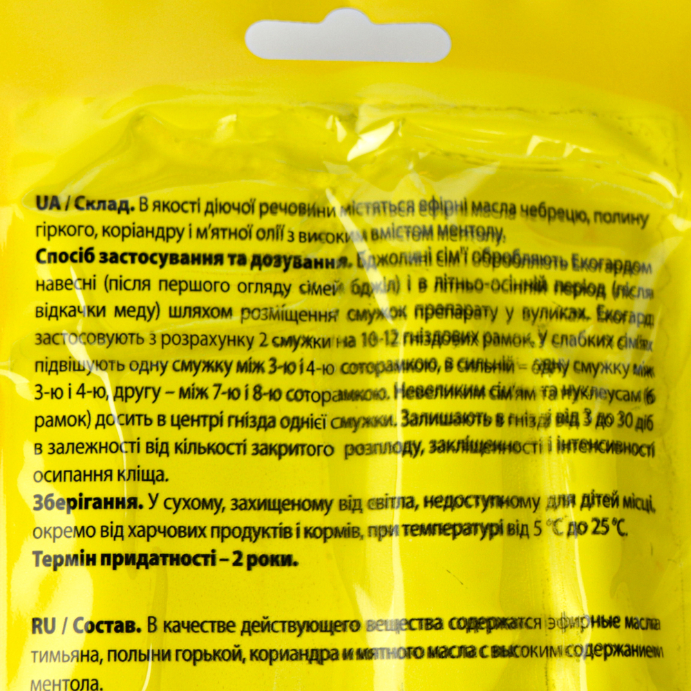 розміщення смужок препарату у вуликах. Екогард застосовують з