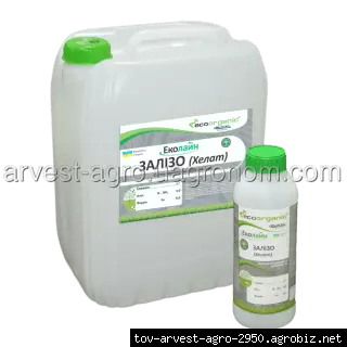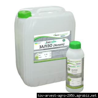 ЕКОЛАЙН ЗАЛІЗО ХЕЛАТ - висококонцентроване хелатоване добриво для позакореневого підживлення розроблене для усунення прояву дефіциту заліза, та для культур особливо вимогливих до умов забезпечення залізом.