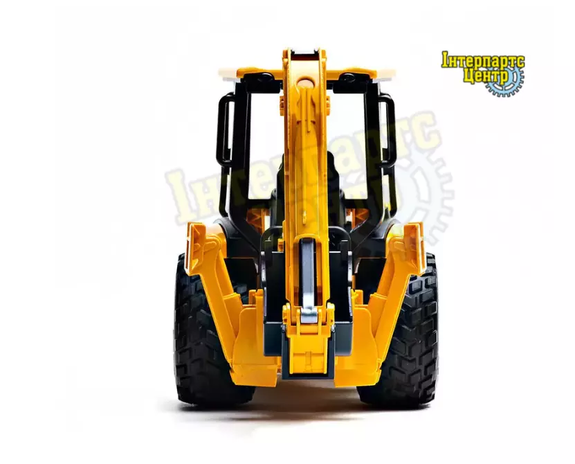 Знімний екскаватор-навантажувач із відкидними опорними ніжками (можна зафіксувати в двох положеннях - робочому та положенні для руху). Модель в точності повторює зовнішній вигляд справжнього, а рухливі елементи і вставки роблять її ще більш реалістичною.