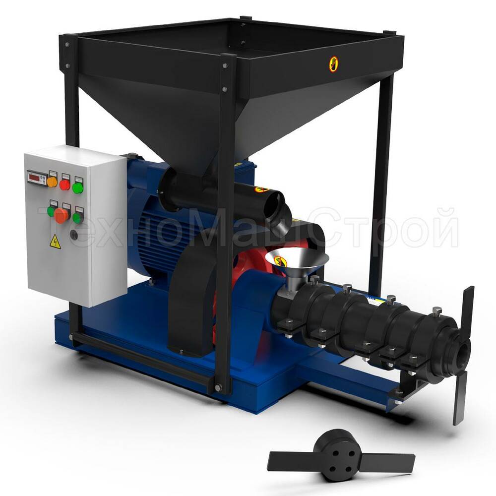 Надійний зерновий екструдер потужністю 30 кВт, призначений для приготування корму домашнім тваринам, птиці та рибі, з продуктивністю до 350 кг на годину. На виході отримуєте готовий продукт у вигляді однієї або двох однорідних довгих паличок. Для зручності подальшого використання можна застосувати спеціальний подрібнювач. Використовується на фермерських господарствах та мініфермах.