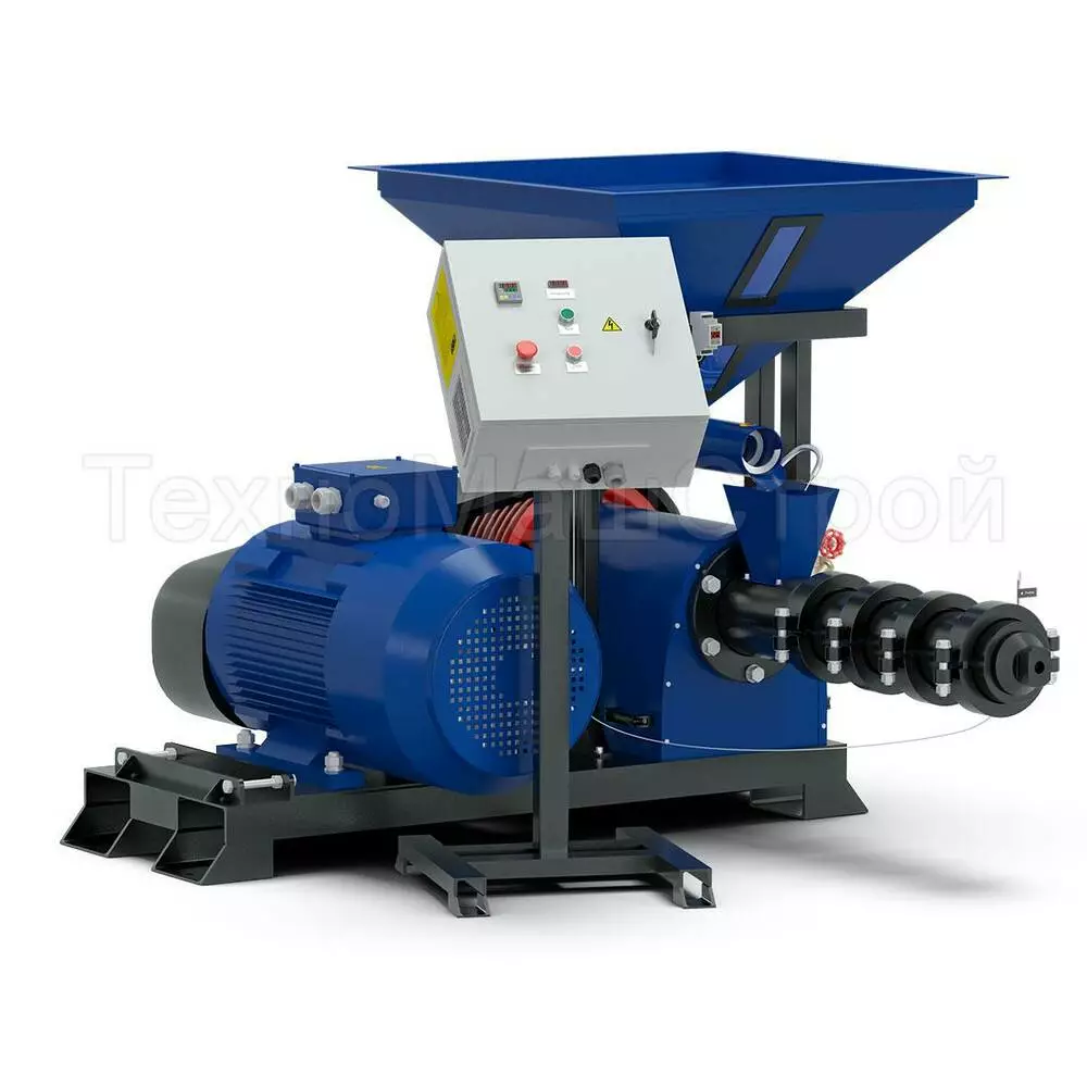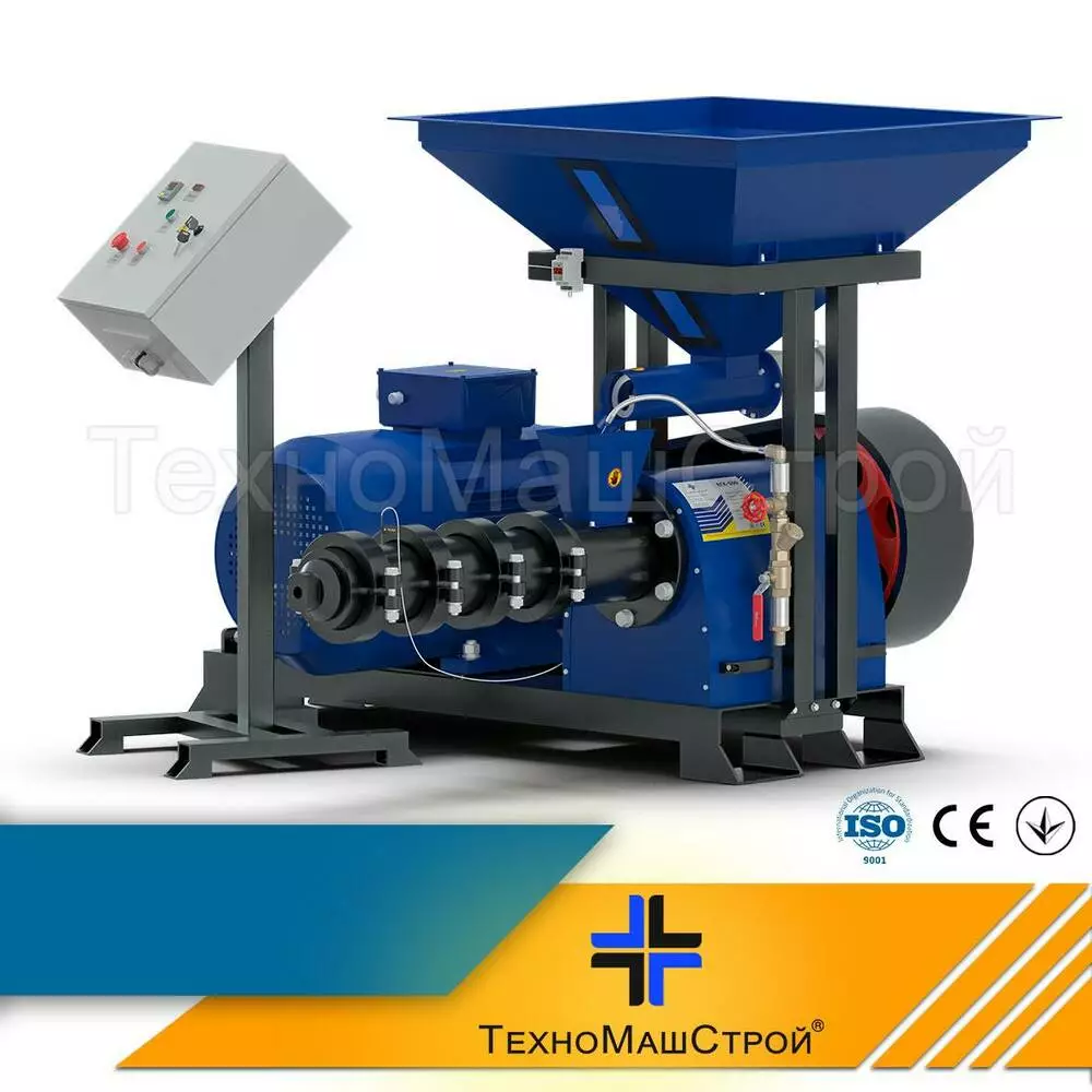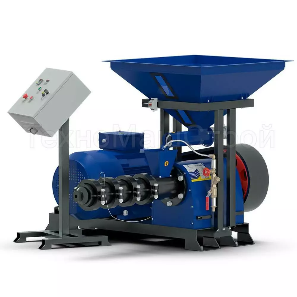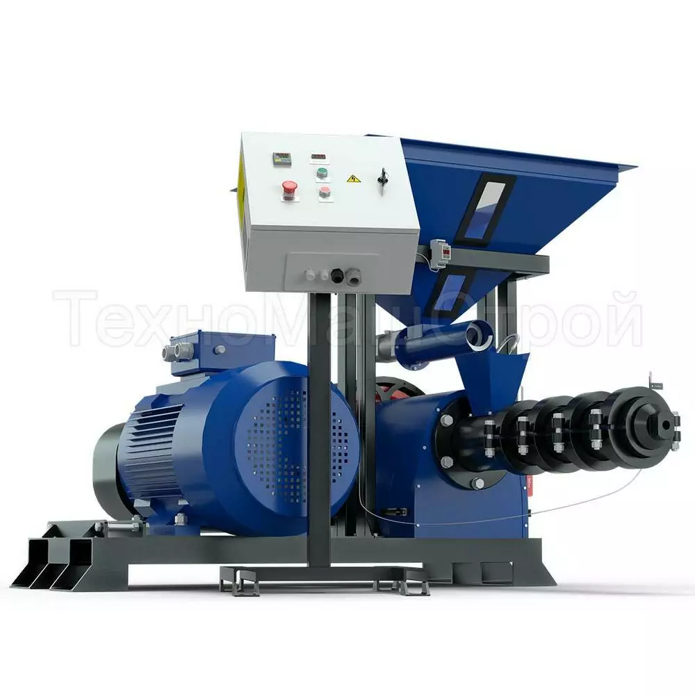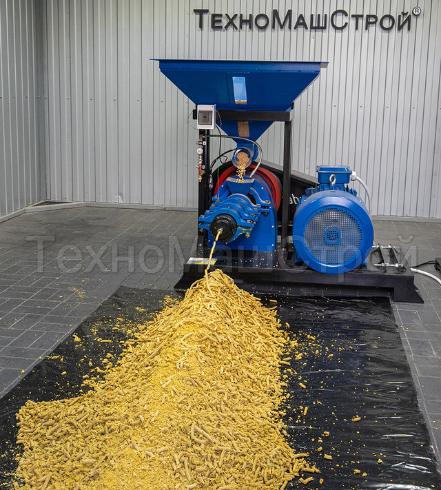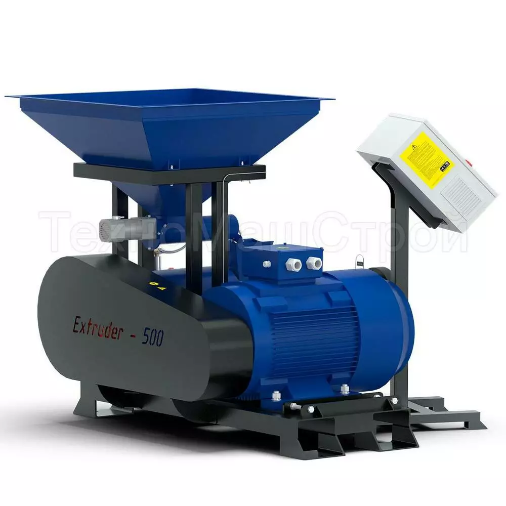 ЕГК-400 зерновий екструдер потужністю 37 кВт., призначений для приготування корму домашнім тваринам, птиці та рибі, з продуктивністю 400 кг/год. На виході отримуєте готовий продукт у вигляді однієї або двох однорідних довгих паличок. Для зручності подальшого використання можна застосувати спеціальний подрібнювач. Використовується на фермерських господарствах та мініфермах. Обладнання має власну шафу управління з амперметром. Для зручності подачі сировини екструдер укомплектований бункером і вібролотком.