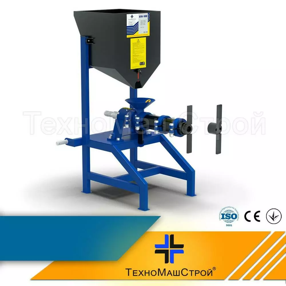 Потужний зерновий екструдер , призначений для приготування корму домашнім тваринам, птиці та рибі, з продуктивністю до 100кг на годину. На виході виходить готовий продукт у вигляді однієї або двох однорідних довгих паличок. Для зручності подальшого використання можна застосувати спеціальний подрібнювач. Використовується на фермерських господарствах та мініфермах.