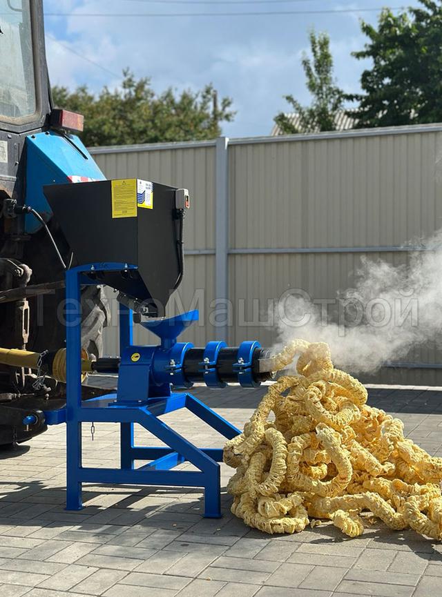 Потужний зерновий екструдер , призначений для приготування корму домашнім тваринам, птиці та рибі, з продуктивністю до 200кг на годину. На виході виходить готовий продукт у вигляді однієї або двох однорідних довгих паличок. Для зручності подальшого використання можна застосувати спеціальний подрібнювач. Використовується на фермерських господарствах та мініфермах.