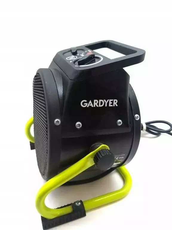 Электрический отопитель Gardyer HE2000 нагревает воздух и распределяет его по комнате с помощью вентилятора внутри. Аппарат имеет мощность 2 кВт.