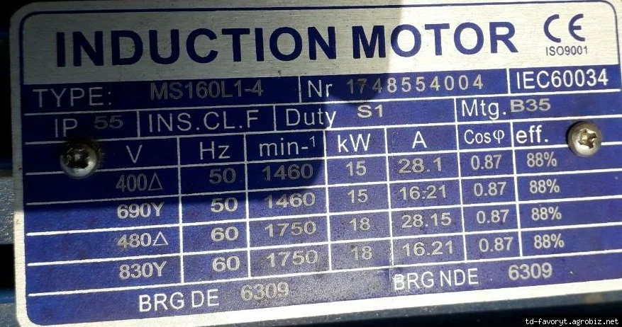 Электродвигатель Induction Motor MS 160L1-4 15.00KwB35 230/400V 50HZ