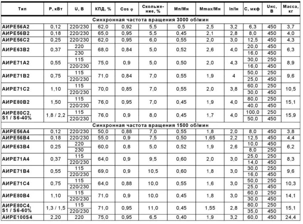Асинхронный белорусский однофазный электромотор АИРЕ80С2 (АИРЕ 80 С2) 2,2кВт/3000 об/мин - это электродвигатель переменного тока с короткозамкнутым ротором, который применяется для преобразования электрической энергии данного тока в механическую. Из самого определения становится понятно, что асинхронный - это не одновременный, ведь у асинхронных моторах частота кручения магнитного поля статора всегда больше частоты кручения ротора.