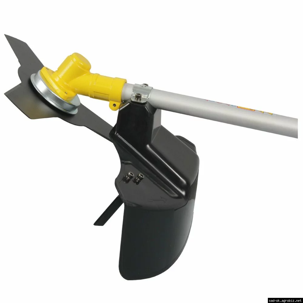 В зависимости от того, какая растительность подлежит скашиванию, данная модель может использовать шпулю с леской или специальный нож. При этом диаметр скашивания растительности с использованием шпули с леской составляет 380 мм, а ножа – 255 мм.