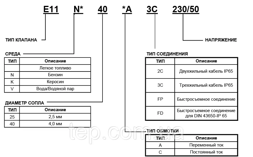 Відповідно до суфіксу в назві вони застосовуються для легкого палива (немає суфіксу), для керосину ("K"), для бензину ("N") і для води/водової пари ("V").