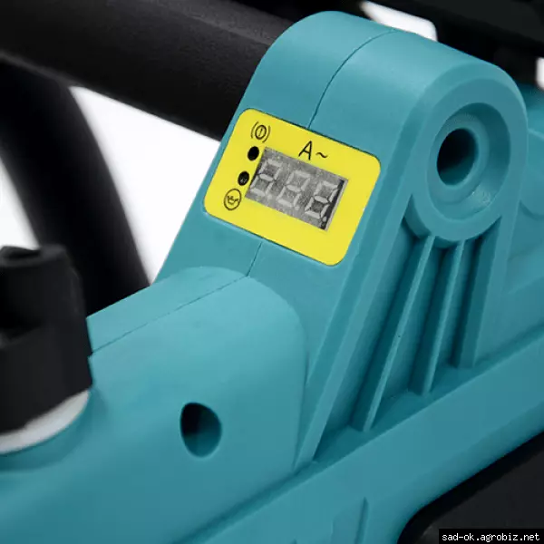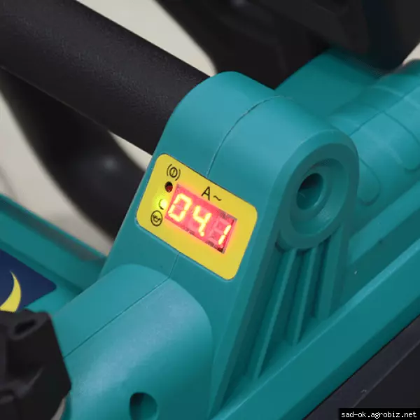 цифровой экран для отображения информации о работоспособности пилы, для показа рабочего ампеража (силы тока в Амперах), показа уровня масла в баке.