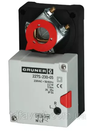 Электропривод GRUNER 225S-230T-02 для управления воздушными и водяными клапанами в системах отопления, вентиляции и кондиционирования воздуха.