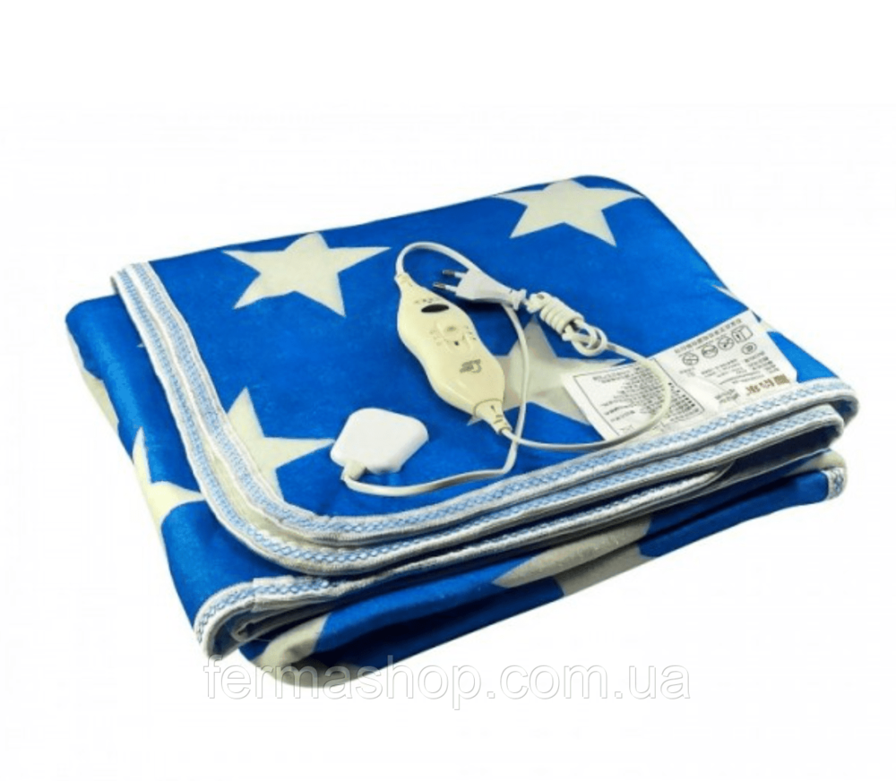 Электропростынь Electric Blanket 150*160 белая звезда на синем фоне Электрическая простынь (150×160 см) подогреет вашу кровать в любую погоду и станет отличным спутником прохладными вечерами. Простынь рассеивает тепло через встроенные провода, потребляет мало энергии. В качестве нагревательного элемента используется двойной спиральный нагревательный кабель в герметичной силиконовой оболочке. Преимущества: За 15 минут простынь согреет постель. Обеспечивает комфортные условия для отдыха. Мягкое тепло, равномерно распространяется по всей поверхности изделия. Оказывает успокаивающее воздействие. Снимает напряжение в мышцах. Характеристики: Количество температурных режимов: 2 Размер: полуторный Длина: 150 см Ширина: 160 см Потребляемая мощность: 120 Вт Питание: 230 В, 50 Гц Материал: полиэстер Комплектация: Простынь с сетевым проводом Заводская упаковка