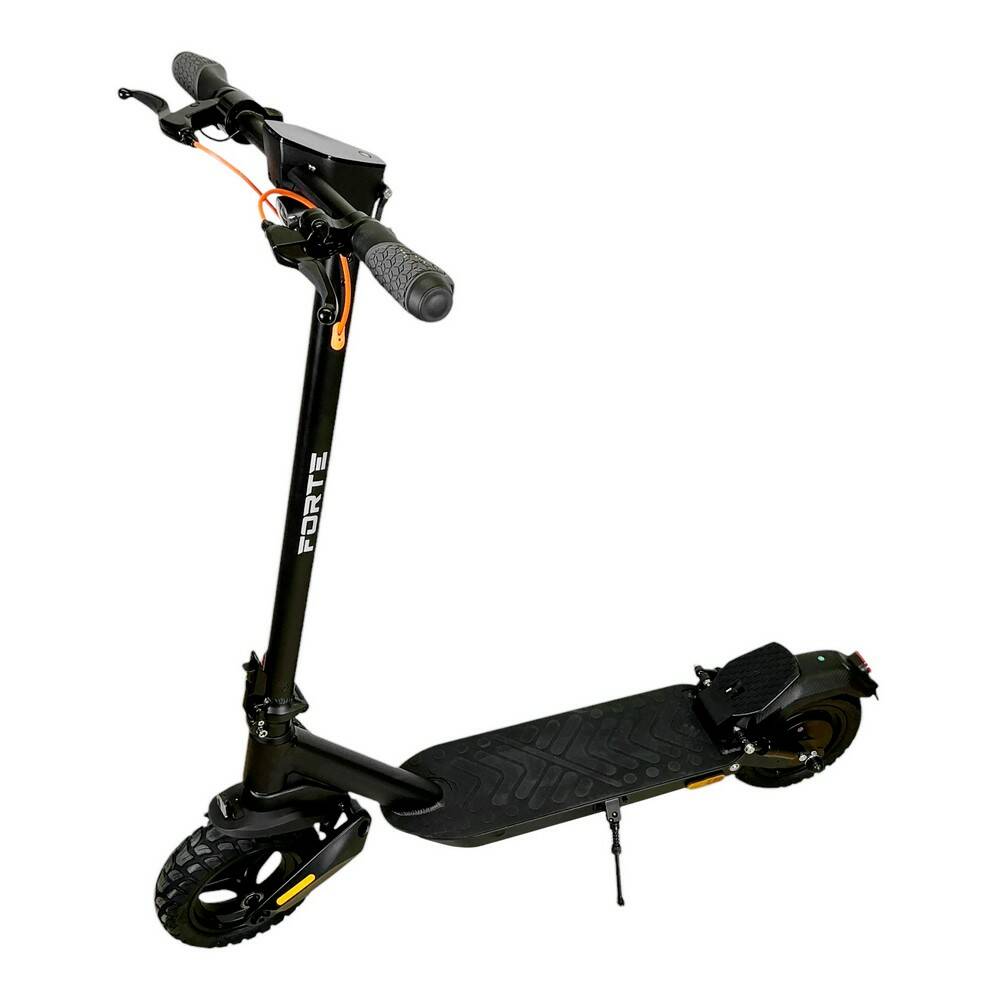 Опис Електросамокат E9GS Forte Акумуляторний самокат Forte E9GS – зручна та проста у використанні модель. яскравий дизайн, легко користуватися та складати переднє та заднє світло, рефлектори з усіх боків легка алюмінієва рама передні та задні амортизатори ультра сучасний цифровий дисплей передні та задні колеса 10", ніпель для підкачування коліс. мобільний додаток