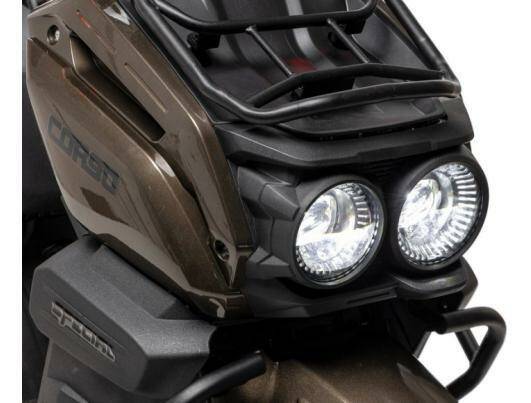 Передня підвіска телескопічна пружинна вилка Задня підвіска пружинно-гідравлічні амортизатори. Гальма переднє/заднє дискове LED-фара основного світ