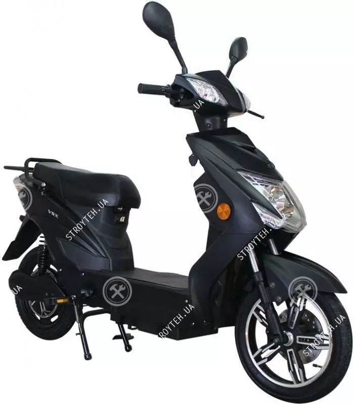 Электроскутер Forte VSX черный Электроскутер FORTE VSX удолетворит все потребности водителя, он оснащен: тяговым гелевым аккумулятором, педальным приводом для подзарядки, мощным двигателем, задней сумкой для багажа, а также большими колесами. Благодаря педалям водитель не ограничен дистанцией, а батарея будет заряжаться в меру пользования педалями. Крепкие и стильные литые диски обеспечат комфорт передвижения на любых типах дорог: от асфальта до грунта. Большой багажник и пластиковый кофр обеспечат надежную и безопасную перевозку груза не мешая движению. Качественная галогенная фара обеспечит хорошую видимость на дороге.