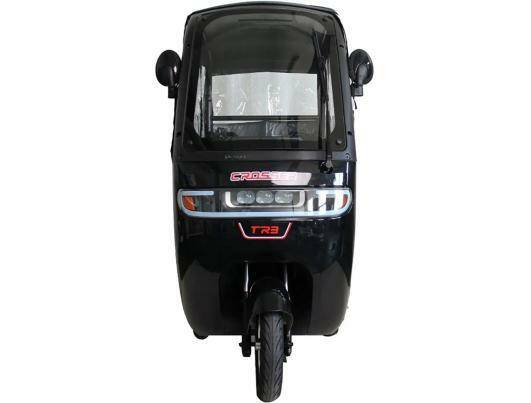 Привід від електродвигуна двигуна організований через понижуючий редуктор шестернясткового типу з двома напіввосьми нерівної довжини, що передає момент на задню тягову вісь електротрайка |