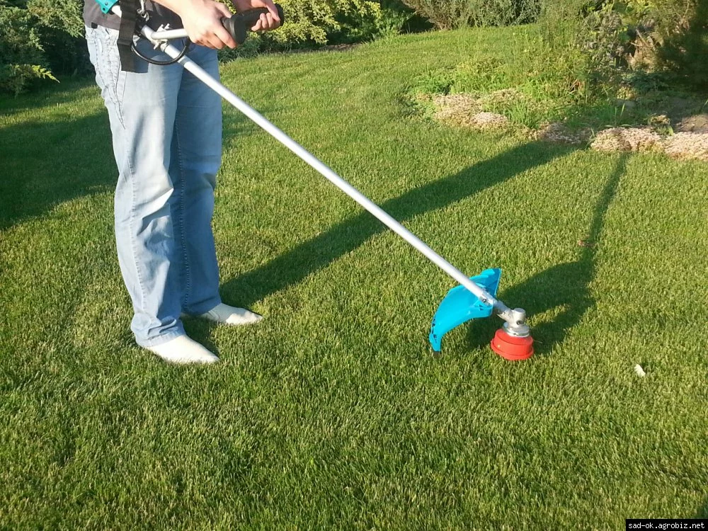 - из-за двигателя такой мощности, инженерам удалось оснастить триммер не только традиционной катушкой с леской, а ещё и настоящим трёх лопастным ножом. Острые кромки ножа не оставляют никаких шансов даже молодым побегам деревьев и кустарников. После прохода ножом, и срезания всех больших растений, и побегов, катушка с леской идеально подравняет участок. Леска делает свою работу намного тоньше и аккуратней, чем мощный нож. Если вы боитесь, что повредите нож об бордюр, камни или забор, то используйте леску в таких сложных местах.