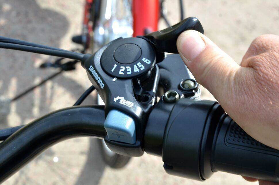 На правій стороні керма є перемикач шести передач Shimano, ручка газу.