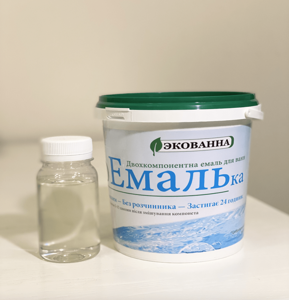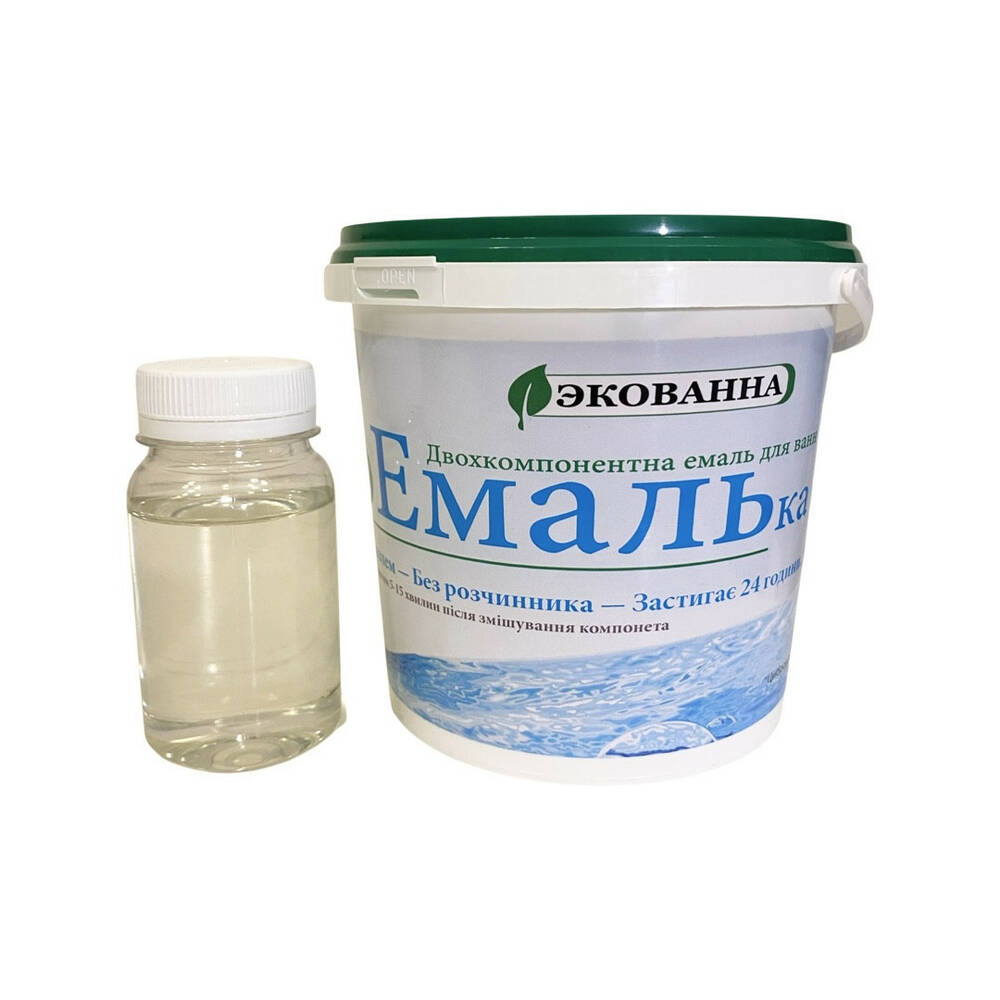Емаль двокомпонентна ЕкоЕмалька для реставрації ванни 1000г біла глянець (ЕкоВанна)