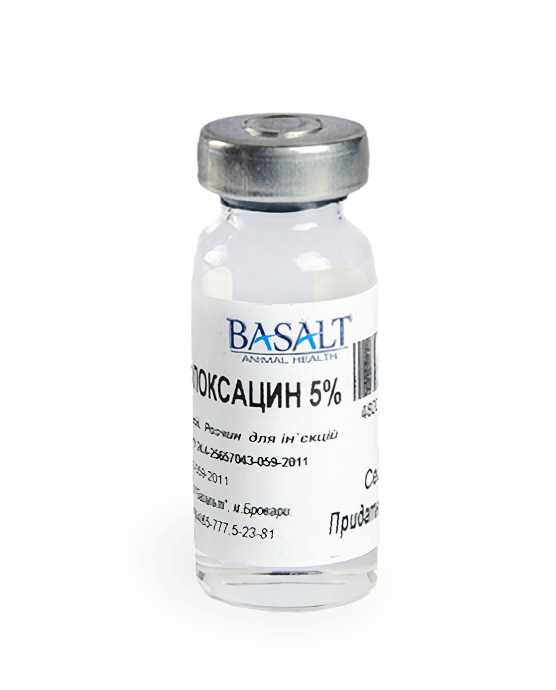 Енрофлоксацин 5% для ін'єкцій 10 мл Базальт