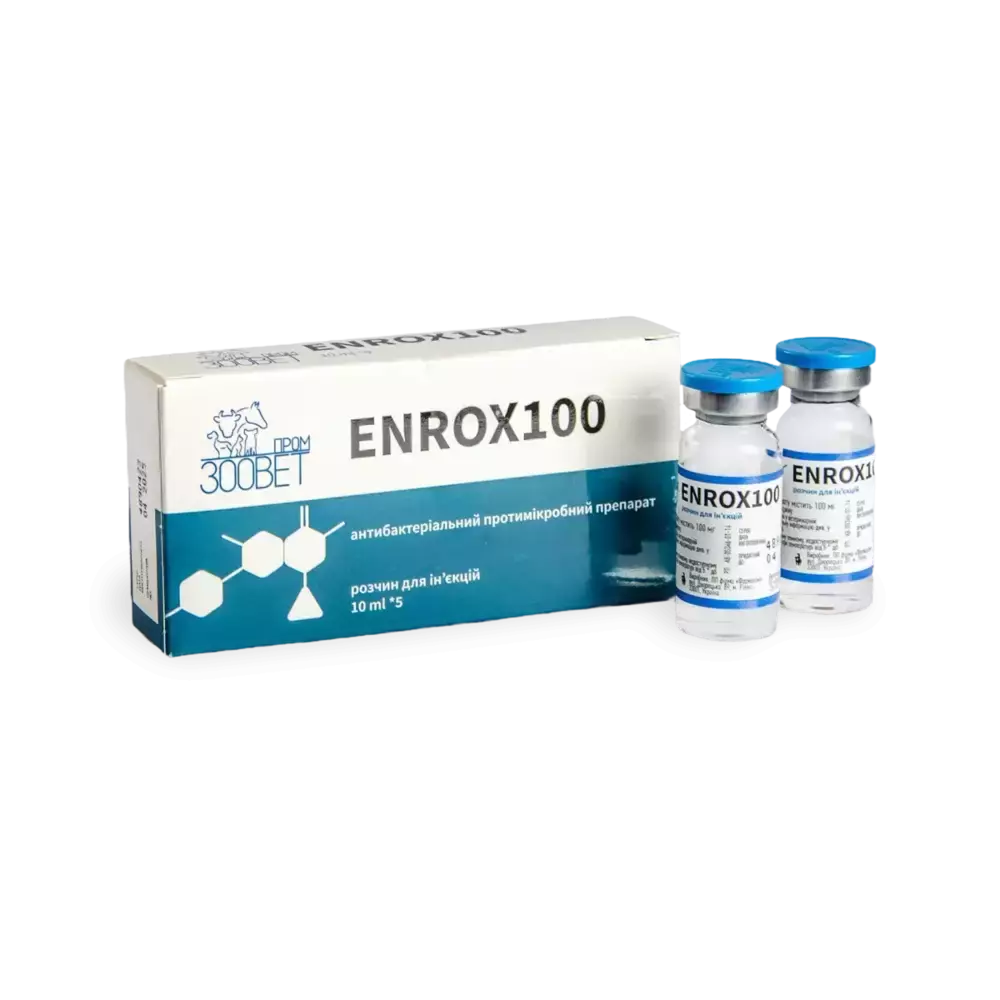 Препарат швидко всмоктується з місця ін'єкції і проникає у всі органи та тканини організму. Максимальну концентрацію препарату в крові спостерігають через 0,5-1 годину після введення і зберігається протягом 4-6 годин, атерапевтична концентрація - протягом 24 годин. З організму енрофлоксацинвиводиться із сечею та жовчю практично у незміненому вигляді та частково вметаболізованому, у вигляді ципрофлоксацину.