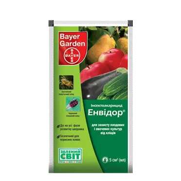 Строки очікування до збирання врожаю: яблука – 40 діб, груші – 50, огірки – 15, баклажани - 35. Максимальна кількість обробок – 2 рази.