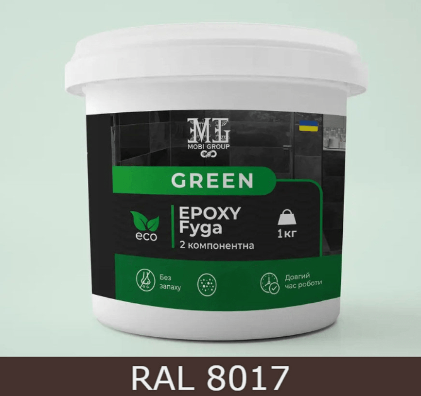 Епоксидна фуга для плитки Green Epoxy Fyga 1кг (легко змивається, середнє зерно) Шоколадно-коричневий RAL 8017