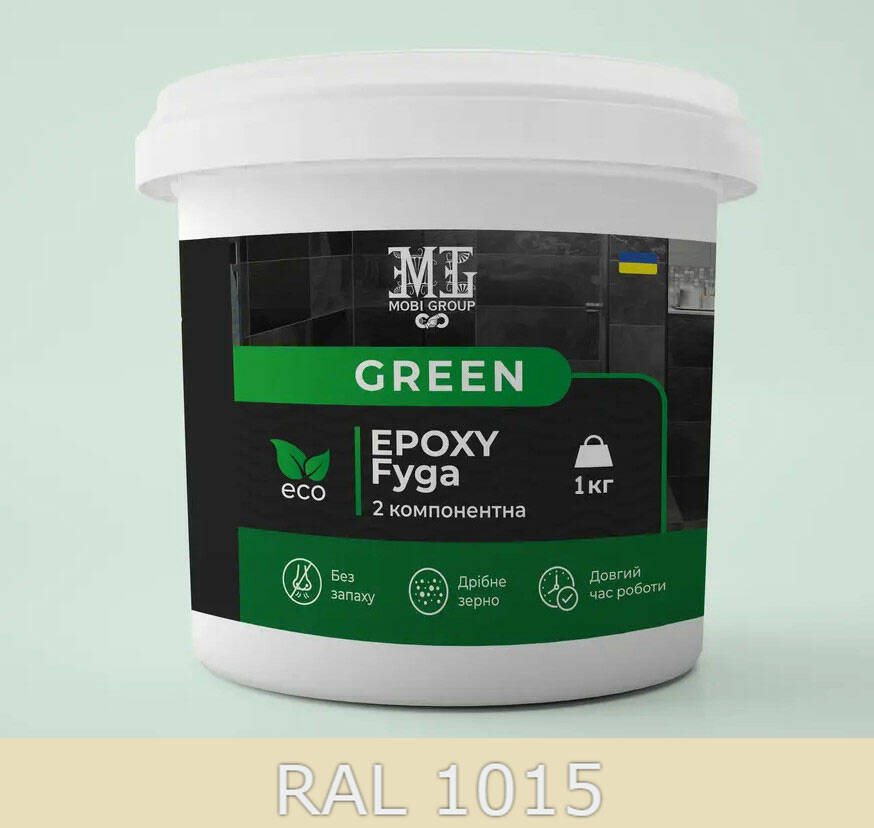 Епоксидна фуга для плитки Green Epoxy Fyga 1кг + Змивка для епоксидної фуги Lava (дрібне зерно) бежевий (Слонова кістка) RAL 1015