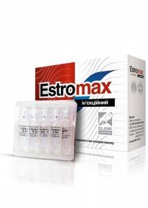 Естромакс Опис: Прозора безбарвна рідина. Склад: 1 мл препарату містить 0,25 мг натрієвої солі клопростенолу. Фармакологічні властивості: Клопростенол є синтетичним аналогом простагландину Ф2-альфа, який в період лютеальної фази статевого циклу у самок викликає регресію жовтого тіла та сприяє росту і розвитку фолікулів. Застосування: Коровам, нетелям, телицям для посилення перейм при ускладнених пологах, прискорення інволюції матки, при затриманні посліду, терапії ендометритів в комбінації з протимікробними засобами, для регресії персистентного жовтого тіла, регресії кісти жовтого тіла, для стимуляції і синхронізації еструса в період осіменіння. Свиноматкам для стимуляції та синхронізації опоросів. Кобилам для стимуляції еструса та регресії персистентного жовтого тіла. Сукам, кішкам при комплексній терапії хронічних ендометритів та для переривання небажаної вагітності. Дозування: Самкам усіх видів тварин препарат вводять внутрішньом'язово або підшкірно. Корови, нетелі, телиці:: - при пологових ускладненнях ? 2 мл на 400 кг маси тіла. На кожні 50 кг більшої (меншої) ваги доза збільшується (зменшується) на 0,3 мл. - при функціональному розладі яєчників - 2 мл за 3-3,5 доби до бажаного терміну осіменіння. При відсутності ознак тічки повторне введення препарату проводиться на одинадцятий день після першої ін'єкції. Через 3-3,5 доби в незалежності від ознак тічки проводиться дворазове осіменіння. . . Свиноматки - 0,5-0,7 мл. Кобили - 1 мл. Найбільш сприятливий термін для парування настає на 4-6 добу після введення. Сукам - 0,2-0,3 мл. Кішкам - 0,1 мл; для переривання вагітності необхідно 3-5 таких ін'єкцій з інтервалом 12 годин. Протипоказання: При введенні самкам в першій третині вагітності існує висока вірогідність аборту. Застереження: Все молоко, отримане від першого після введення препарату доїння, направляється тільки для випоювання тваринам. Форма випуску Ампули по 2мл, склянні флакони по 10, 20мл Зберігання: В темному місці при температурі від 5 до 20° С. Термін придатності - 2 роки з дати виготовлення. Тільки для ветеринарного застосування Аналог Естрофана Естромакс 2мл №10 амп. O.L.KAR.