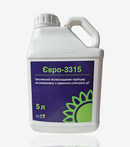 Назва товару: Евро-3315 Короткий опис: Евро-3315 — інноваційний системний гербіцид ґрунтового типу, призначений для боротьби з дводольними та злаковими бур'янами у посівах соняшника. Цей препарат є оптимальним вибором для обробки площ, зайнятих гібридами соняшника, стійкими до імідазолінонів. Форма постачання — рідкий концентрат для створення бакових сумішей. Механізм дії: Дієві речовини Евро-3315 проникають у бур'яни через пагони, листя та кореневу систему, транспортуючись по флоемі та ксилемі до точок росту. Там вони порушують синтез амінокислот, призводячи до затримки розвитку, загибелі точок росту та в кінцевому підсумку до загибелі бур'янів. Переваги: - Евро-3315 ефективно знищує як однорічні, так і багаторічні злакові та дводольні бур'яни, включаючи їхню кореневу систему. - Препарат стійкий до змивання дощем, вимагає лише однієї обробки на весь період вегетації культури. - Забезпечує тривалий захисний ефект та характеризується гнучкими термінами застосування. Особливості застосування: - Евро-3315 оптимально застосовувати шляхом обприскування в фазу від 2 до 8 справжніх листків культури. - Ефективний навіть при ранньому внесенні та стійкий до змивання дощем. - У разі сильного засмічення амброзією, рекомендується обробити ґрунт до появи четвертого листка. - Не рекомендується раннє застосування препарату та механічна обробка міжрядь відразу після внесення препарату.