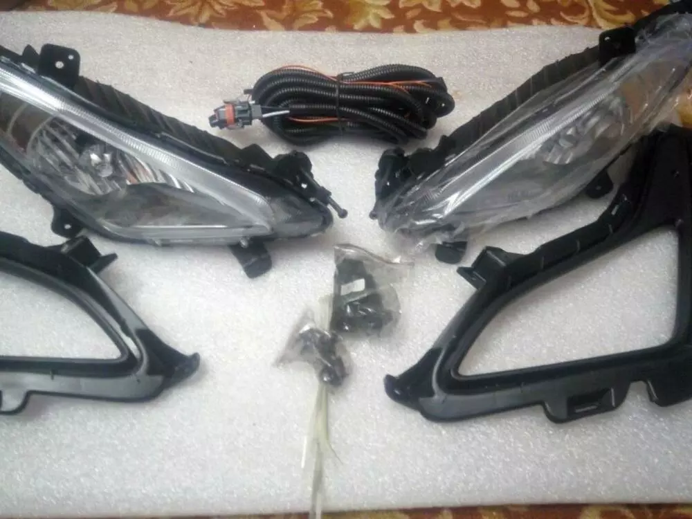Комплект протитуманних фар для автомобіля Hyundai Elantra MD 2014-2015 рестайлінг складається з двох високоякісних протитуманок, двох рамок, а також кнопки та проводки.